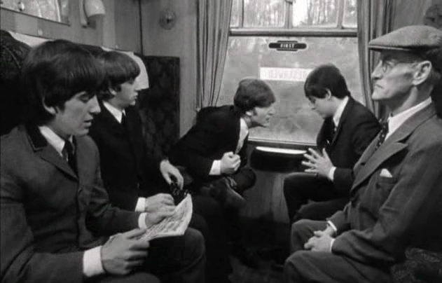 Who's that little old man? The Beatles leg it in the opening credits to A HARD DAY'S NIGHT (1964)